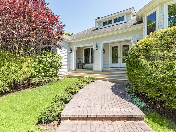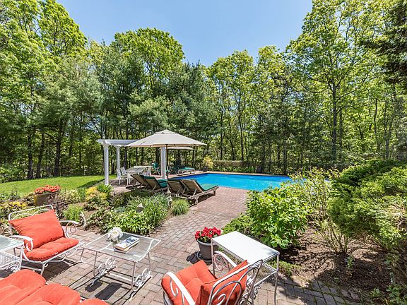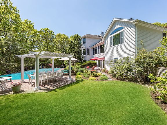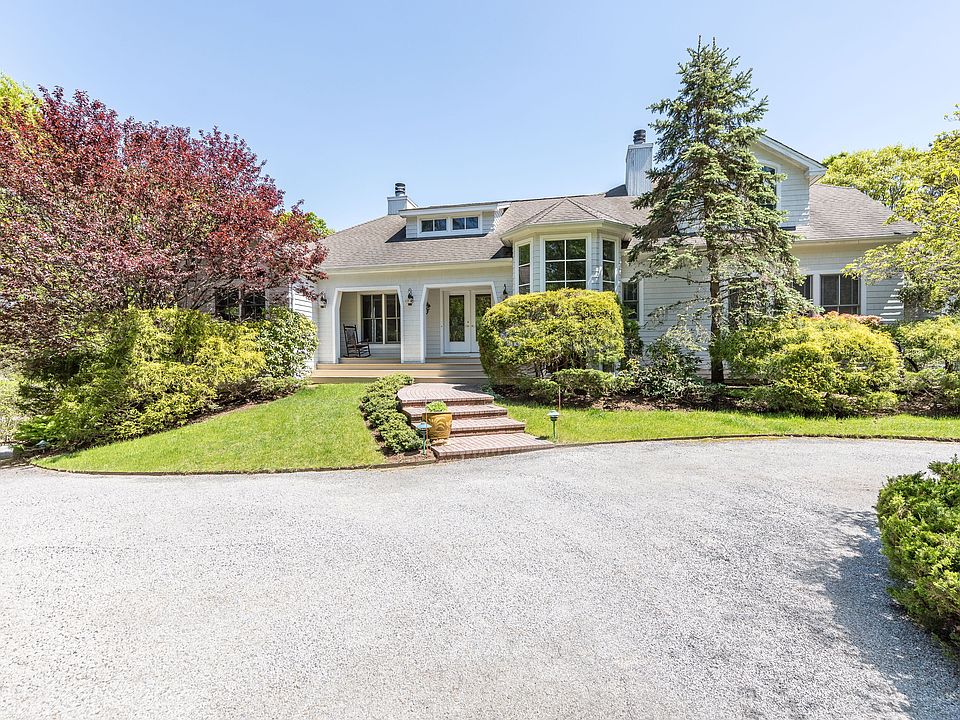 A spacious, bright, multi-level East Hampton cedar-shingled postmodern home awaits. With a contemporary flair this 4 bedrooms, 41/2 bathroom home is situated on a private 1.67 acres. Located on a quiet cul-de-sac 2 miles from East Hampton Village. Arrive through a gated entrance to a circular driveway. The main entrance leads to an open family/great room with a wood-burning fireplace overlooking the pool and brick patio area. Located on the first floor is a large romantic master bedroom suite with a large jacuzzi tub. There is plenty of room on the main level to enjoy, stay warm in the den with a wood-burning fireplace or enjoy the warmer months on the beautiful screened-in porch. A powder room close by services the first floor. A dramatic staircase overlooking the family/great room leads to the upper-level guest wing with three large bedrooms and two full bathrooms. The above grade lower level provides a tv/media room, laundry, office, and workout area with a full bathroom. This already spacious home has an oversized 2 car garage and a 20x40 heated pool and an extensive brick patio area.