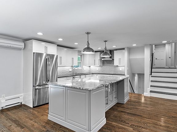 Who put the modern in mid-century modern? This upscale contemporary in coveted Precinct 1 did! Nestled on a gorgeous 1 acre fenced lot in a premier location, this updated 4-bedroom, 2.5-bath home offers space for everything - work, play, hobbies, or relaxation. The open floor plan showcases a stunning kitchen with center island overlooking the dining and fireplaced living areas, ideal for entertaining. The 4 season sun room provides extra space to unwind. Upstairs has 4 bedrooms and updated baths, including a primary suite. Downstairs, off the two car garage, you'll find a mudroom/office, laundry room and half bath. But it doesn't end here! The lower level boasts a great family room with fireplace. Outside, enjoy the landscaped yard with oversized patio. This gem is around the corner from Dedham Country Day, minutes from Dedham Square, the Community House, boat launches on the Charles, and a short drive to Route 95/128 and VFW Parkway.