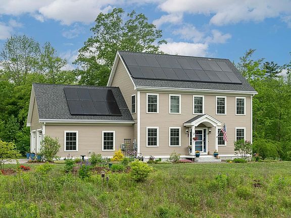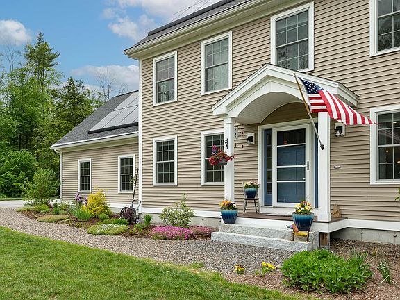 Welcome to peaceful country living with modern comforts! Nestled in a quiet neighborhood with a serene setting, this home offers the best of both worlds—peace & privacy, yet minutes to Rte 125 & 101, & only 3 mi. to shopping & dining. This charming 1,976 sq. ft. colonial home features a bright, open-concept layout perfect for modern living. The spacious kitchen boasts a large center island, stylish tile backsplash, & walk-in pantry, seamlessly flowing into the adjacent dining room w/ direct access to a back deck—ideal for enjoying quiet mornings while watching birds & deer wander through the yard. The living room connects effortlessly to the dining area, creating an open, airy space for entertaining & relaxation. A dedicated study/office with built-ins & a murphy bed for guests provides dual functionality. A half bath completes the 1st floor. Upstairs, the primary suite includes a private bath w/ dual vanity & walk-in closet. 2 additional bedrooms & a full family bathroom provide plenty of room for everyone. The attached 2-car garage has direct entry into the home for convenience. Outside, enjoy a private lot w/ deck & pergola, pollinator garden, & 5 raised garden beds—perfect for the green thumb in the family. A new shed adds extra storage space for lawn & garden tools. Eco-conscious buyers will love the energy savings provided by solar panels—potentially eliminating your electric bill entirely! Don’t miss the opportunity to own a beautiful home in a picturesque location!