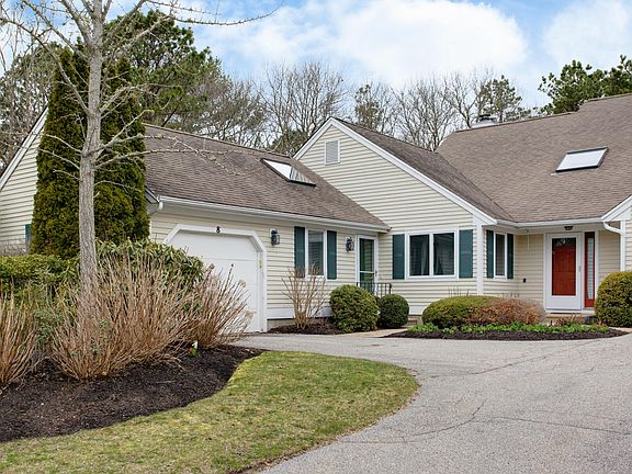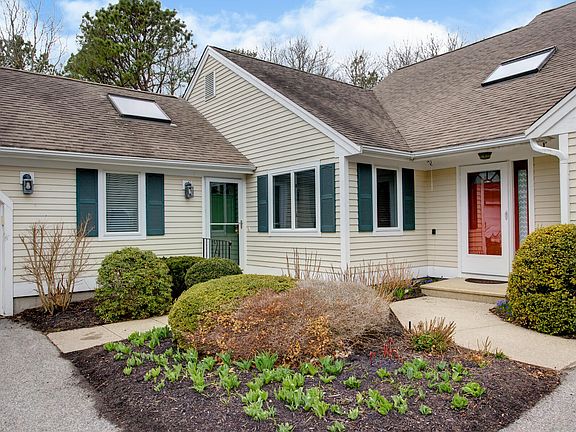 A truly magnificent Vineyard II Southport Condo! This bright and sunny ranch style unit located at the end of a cul-de-sac offers privacy galore. The large master bedroom has a walk-in closet, a full bath with shower and laundry. The guest room is directly across from the second bath for convenience. The full kitchen is just steps to the dining area, which opens to the living room with features a wood burning fireplace. The finished basement features an extra 834 square feet with windows and a walkout slider to a patio area.The patio and deck areas have great privacy with wooded areas along the side of the unit and directly in back of the unit. Newer heating system and hot water tank (2016). Enjoy all the amenities this 55+ community has to offer such as two pools, gym, tennis, swimming, golf, games and much more. Conveniently located just minutes from Mashpee commons. PlBuyer and buyer agent to verify all information here within.