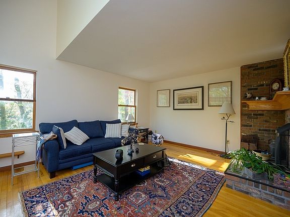 Charming 4 bedroom 2 1/2 bath contemporary home in North Amherst close to UMass, Cushman Market, Puffer's Pond, conservation trails, and a short ride to downtown. Ideal walking neighborhood. Well landscaped yard, 1 car garage, large three season porch overlooking a water garden, perfect for relaxing and entertaining, Inside you will find an open floor plan on the main level with living room, cathedral ceilings, fireplace and large windows, dining area, kitchen with bedroom, and a 1/2 bath. Upstairs is the primary master suite with walk-in closet and full bath, along with 2 additional bedrooms with ample closet space and full bath The lower level includes a family room, utility room with laundry and access to the garage. A must see in a great location. First showings Saturday May 10th 1:00 - 3:00 PM. Open House.