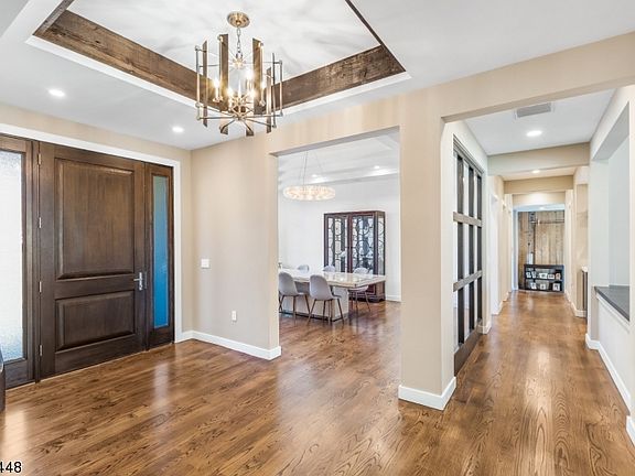 Sensational contemporary home situated upon two beautiful acres, blends modern single floor living with high end craftsmanship and finishes throughout. Striking foyer and dining room embrace an open design, with glass framed wall. Stunning family room with floating display wall and linear contemporary gas fireplace and custom built-in cabinetry connects to the kitchen with French styled barn doors.The gourmet kitchen is a work of art: custom cabinets with Calacatta quartz counters, Professional Series appliances include double ovens, six burner range, 48" refrigerator with Obsidian interior and custom lighting, while double glass doors open to the covered terrace with fireplace. A butler pantry with wine refrigerator and ice machine, plus walk-in pantry are perfectly located between the dining room and kitchen. Further along, an Impressive office/media room features reclaimed wood wall and barn door and polished concrete floors, elegant powder room with mother of pearl wall detail and a fabulous laundry suite and mud room define this area of the home. Striking Primary suite and spa bath are an oasis featuring walk in shower, soaking tub, dual vanities with LED mirrors, heated floors and private water closet with two oversized walk in closets. Three additional bedrooms and two luxurious baths with attention to detail complete the floor. Finished LL includes three expansive spaces accompanied by a complete kitchen, full bath and laundry and double glass door private entry.