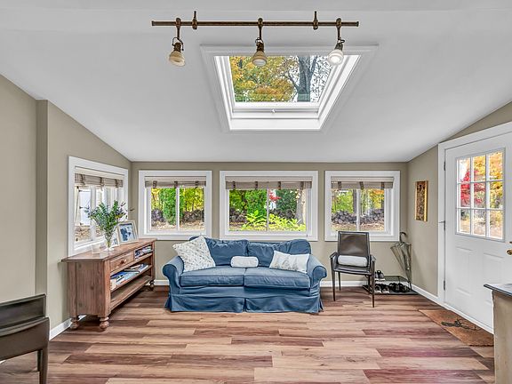 Charming and updated 4 bedroom Cape-style home in the highly sought-after Candlewood Orchards lake community! Just a short stroll from Candlewood Lake, this mint-condition home includes access to a private beach--an ideal opportunity to enjoy lake living. Step inside to a bright sunroom with oversized new skylight that leads to a cozy living room featuring the first of two wood-burning fireplaces and gleaming hardwood floors. A recently updated chef's kitchen is a dream offering shaker cabinetry, a large center island, granite countertops, farm sink, gas cooking, stainless steel appliances and a dining area. The main level also includes two bedrooms, two full bathrooms, and an office offering a work-from-home option. Upstairs, the oversized primary en-suite bedroom boasts vaulted ceilings, a large new skylight, full bath and a walk-in closet. A partially finished lower level provides a fourth bedroom with a brick wood-burning fireplace, plenty of storage, and access to the one-car garage. Home improvements include a renovated kitchen and baths, new roof, new skylights, newly sealed driveway and Central Air. Enjoy a level, beautifully usable yard with a large deck perfect for outdoor entertaining and a convenient storage shed for all your outdoor gear. Conveniently located near shopping, schools, and highways, yet tucked within a quiet, scenic lake community--this home offers comfort, flexibility, and the best of lake life living