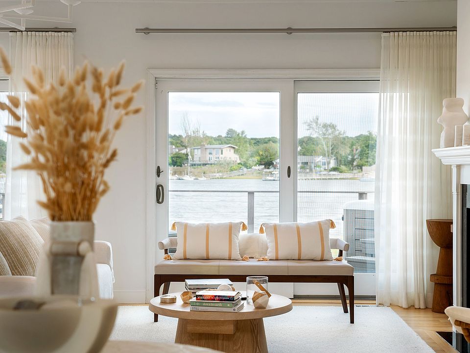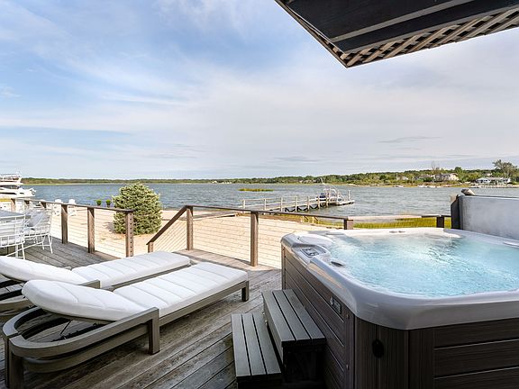Set along the shoreline of the coveted Cold Spring Point Beach Community, this newly reimagined beach house with a private dock offers the perfect balance of Hamptons sophistication and laid-back coastal living. From sunrise to sunset, enjoy sweeping water views and tranquil surroundings that define the essence of waterfront life.Curated by renowned interior designer Purvi Padia, with exquisite lighting by Lindsey Adelman, the home radiates refined elegance while embracing an airy, beachside charm.The sunlit open-concept living space features vaulted ceilings and expansive sliding glass doors framing panoramic vistas of Cold Spring Pond and the sandy beach. A chef's kitchen with premium stainless-steel appliances and sleek Carrera marble countertops flows seamlessly into a spacious great room, designed for both relaxed gatherings and elegant entertaining.The first floor offers a full bathroom with laundry and a versatile bonus room with wall-to-wall closets—ideal as a home office, den, or guest suite.Upstairs, the private primary suite boasts an upper deck overlooking the water, a beautifully renovated en-suite bath, and a generous custom walk-in closet—crafted for comfort whether for weekend escapes or year-round living. Two additional oversized bedrooms, each with water views, share a tastefully updated bathroom, providing ample space for family and guests.Outdoor living is elevated by a newly built IPE wraparound deck with an expandable awning, dining and lounge areas, and a soothing hot tub—perfect for unwinding after a day on the water.Launch your boat from the rebuilt deeded dock with new pilings, enjoy a leisurely kayak along the pond, or take advantage of the community tennis courts just steps away. A short stroll in your flip-flops brings you to the Great Peconic Bay beach for a refreshing swim.This exceptional property presents a rare opportunity to experience waterfront living in one of the Hamptons' most sought-after private beach enclaves.