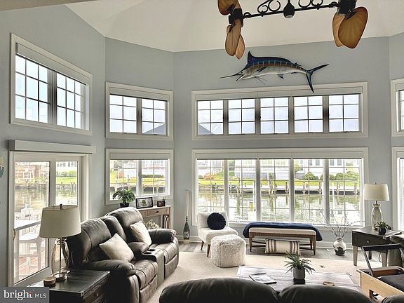 Professional photos soon!! Boaters Delight!!!"Terns Landing" Coastal Style Waterfront home with beach inspired elements! Prime location with easy access to the bay and beach, this property is the ideal retreat! Your vessel awaits you on your updated boat lift with effortless access to the bay at your back door. Ease and comfort abound as you cross the threshold of this stunning 3-bedroom, 3.5-bathroom home with seamlessly flowing premium LVP flooring throughout. The bright open floor plan immediately greet you with its neutral color palette and floor to ceiling windows. Custom motorized shades and multi room audio system are just a few pleasures you'll find in this exquisite property. The efficient gas fireplace will serve as a picturesque backdrop to many living room gatherings, or as the centerpiece for a few minutes of solitary tranquility. Creating beautiful meals will be a joyful experience in the recently updated chef-inspired kitchen, which flows easy into the dining room and living room. Plenty of cabinet and counter space, along with an extra prep sink allows for maximum workspace and flexibility. The fashionable backsplash of ceramic tiles makes this crisp room pop! The gourmet hub is both stylish and functional with its multiply ovens and extra wine refrigerator. A generous pantry space helps keep snacking supplies out of sight. Rich with two walk-in closets for your wardrobes, the expansive primary bedroom located on the main level has a brand new private bathroom flooded with natural light and includes a dedicated makeup/hair station. A tray ceiling and glass doors to the cozy sunroom complete this restful primary bedroom. The additional 2 bedrooms, each with their own full bathrooms with skylights are both spacious and quite unique. They both have plenty of closet space, and one has a large sundeck with views across the bay--a great place to relax before turning in for the evening. On the upper level you'll also find a private office, an open loft area, perfect for a game room and entertaining and a giant storage area. The attractive, recently installed landscaping is all the more appealing with an underground sprinkler system requiring minimal maintenance. Looking out over the landscaping, a breezy front porch is a nice spot for relaxing with refreshments, whether in solitude or among family or neighbors. Dependably crafted of composite materials, the appealing rear structure is the stage for crab feast and grilling with friends and family. An upgraded storage/workshop is found in the extended two car garage. With a short drive to the neighborhood yacht club and various shopping and dining destinations, this property is the ideal location and impressive beach retreat. A special find in the Terns Landing development, within the highly desirable Ocean Pines community. This home is a blank canvas for your lifestyle and memories!