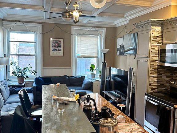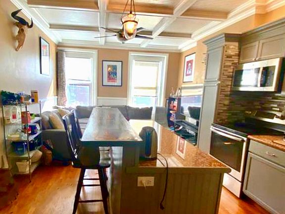 Decorative high ceilingsGranite countertopsQuaint lewis stIn-unit washer and dryerStainless steel appliancesKitchen islandLarge eat-in kitchen