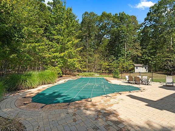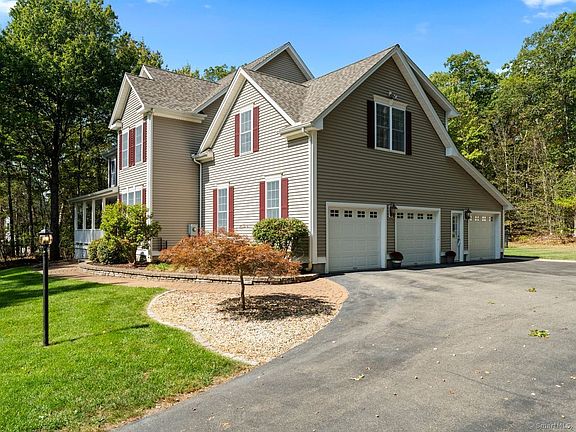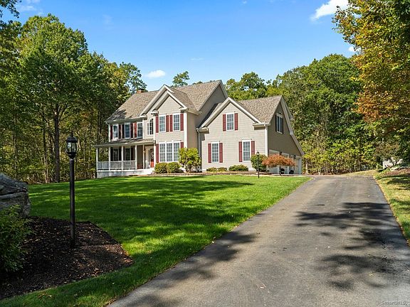 Set on a private 2-acre lot in a cul-de-sac neighborhood, this 4-bedroom, 2.5-bath colonial farmhouse offers 3,146 sq ft of living space plus 600 sq ft of finished lower-level space. Follow the cobblestone walkway to the welcoming farmhouse porch, perfect for relaxing in your favorite rocking chair. Inside, the first floor features 9-foot ceilings and oversized windows that flood the rooms with natural light. The spacious family room includes a soapstone wood stove insert and sliders leading out to the pool and patio. The remodeled kitchen is equipped with granite counters, stainless steel appliances, and cherry cabinets. A formal dining room offers plenty of space for gatherings, while the living room/den includes built-in cabinets, bookshelves, and French doors if a more intimate setting is desired. Upstairs, the primary suite with tray ceiling includes a large walk-in closet and a spacious bath with a jacuzzi tub, separate shower, and double sinks. Three additional bedrooms share a hall bath, with one bedroom offering a convenient Jack and Jill entrance. A large bonus room over the three-car garage provides flexible space perfect for a playroom, exercise room, craft area-or all of the above! The professionally landscaped yard was designed with privacy in mind. The irrigated front lawn is lush and green while the back yard retreat includes an in-ground, gunite pool with sun shelf, hot tub and cascading water feature surrounded by a cobblestone patio. Paradise found! This well maintained home had the roof replaced in 2025!