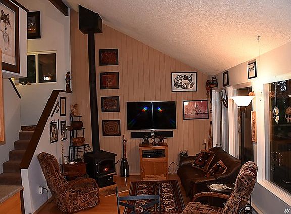 Beautiful lake Whatcom views from this updated 2 bedroom hilltop home. Privacy and serenity can be found at this home, with vaulted ceilings, up-dated kitchen, log stove and wood flooring. Many exterior updates include new (24? x 24?) carport (potential to build on existing foundation).