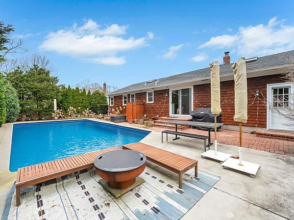 Rental Registration #: RP250662 Spend your summer in this fully updated ranch just minutes from the beach. Designed with style and ease in mind, this home features a sun-filled living room with fireplace, a striking dining area, and a bright eat-in kitchen with center island and stainless steel appliances. There are three bedrooms, including a private primary suite with its own bath and a second full bathroom for guests. The third bedroom is currently set up with dual workstations and a pull-out couch, making it ideal as a guest room, home office, or both-perfect for working remotely or hosting visitors. The lower level includes a full laundry area for convenience. Step outside to your own summer retreat featuring a private in-ground pool, outdoor shower, and a spacious patio complete with a grill, lounge chairs, an outdoor dining table, and umbrellas-perfect for poolside relaxation or entertaining. Mature landscaping and privacy hedging surround the yard for a peaceful, secluded feel. Located on a quiet street but close to beaches, dining, and shopping, this is summer living made easy. Available MD-LD $55,000, June $15,000, July $20,000, August $20,000 or Two weeks $12,500