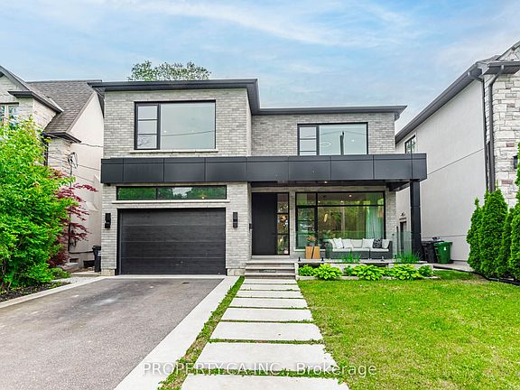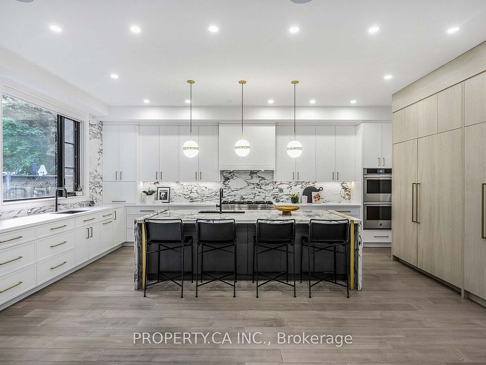 Welcome to 8 Manor Haven Road A Newer Custom Home Across from the Park!This beautifully designed 4+1 bedroom, 6-bathroom home offers over 3500 sqft luxurious living in a prime family-friendly location. Built by Embe Constructions and Designed by Shaun Lipsey, it features premium finishes and a thoughtful, functional layout throughout. The main floor features 10ft ceilings, pre-engineered hardwood floors, pot lights, and floor-to-ceiling inline windows that flood the home with natural light. Spacious principal rooms include a formal living room and a large separate dining room, ideal for entertaining. The chefs kitchen by California Kitchens is a true showstopper, equipped with top-of-the-line JennAir appliances, including a side-by-side fridge and freezer, two wall ovens, and a massive 10-ft island with ample seating. A dedicated prep space with drink fridge, paired with a huge walk-in pantry offer exceptional storage and prep space. The family room features a cozy fireplace framed by a stunning floor-to-ceiling granite feature wall, creating a dramatic and welcoming focal point.Upstairs, you'll find four spacious bedrooms and three full bathrooms, including a primary retreat with a walk-in closet by Closets by Design and a spa-like ensuite with heated floors.The finished basement offers 1570 sqft includes a fifth bedroom, full bathroom, and a large open-concept rec space ideal for a home office, gym, or guest suite. A built-in bar adds flexibility for entertaining. Additional highlights include a heated mudroom, built-in Sonos surround sound including backyard, gas BBQ hookup, and a large private backyard. Located directly across from a park, this home delivers top-tier quality, comfort, and modern family living
