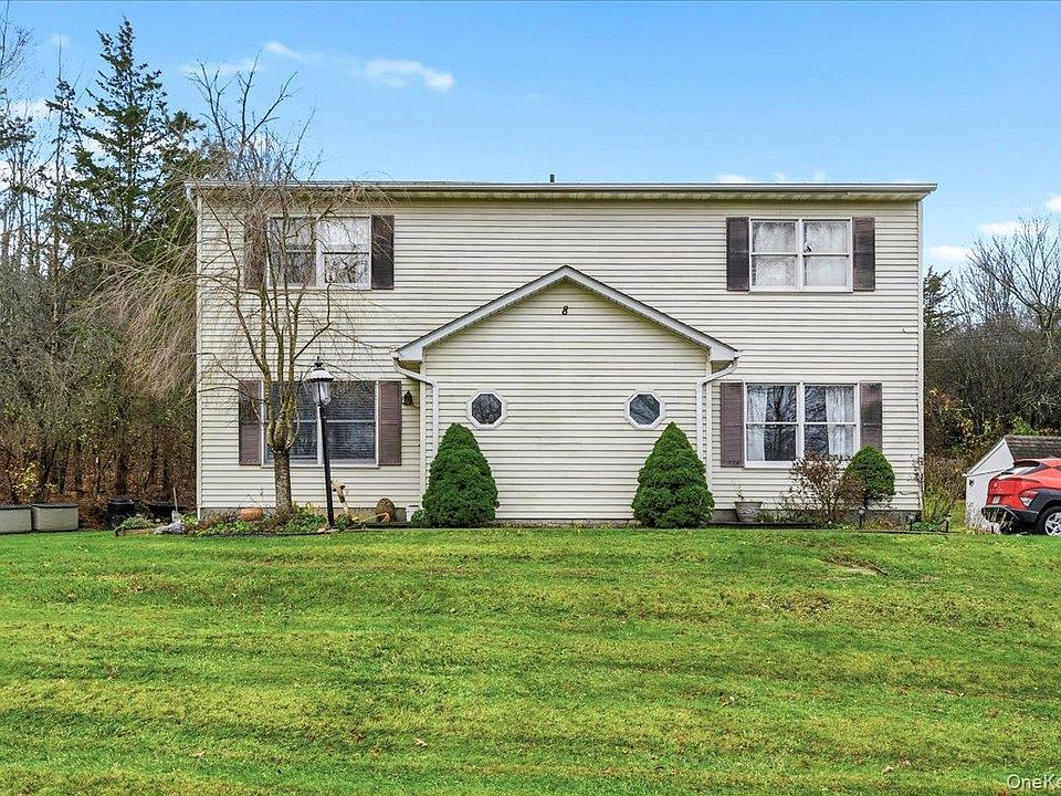 Well maintained Builders own 2 family home. This duplex is set on 2.5 acres with a paved driveway, a private back yard. Each side also has its own cement patio off the kitchen in the backyard. Both sides are nicely laid out with a large kitchen and dining area opening to the back yard and each having a large front living room. Both living rooms have large full size newer windows that overlook the street and distant hills from a perched set back point of view. The second floor has a large landing and hall with closet space and 2 large bedrooms both with ample walk-in closets and a full bathroom. Nice curb appeal. Location is ideal for the commuter with easy access to schools, shopping and local amenities. There is pride of ownership in the general vicinity and this 2 family home is one of two now being offered. Look no further than this excellent investment property. It can be equally ideal for the home buyer that will live on one side and have income from the other side. Rental rate should be $2500 each side.