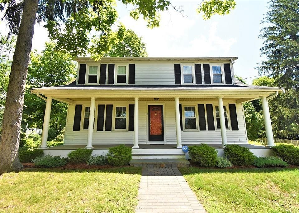 A great price reduction, seller moving... See this Col w/ charming Farmer's porch front entry-- make it yours ! A memorable homestead Circa 1850, a home glowing w/ warmth and comfort. Original hardwood flooring under wall / wall carpeting. Inviting living room , sunny windows, and leads to dining room w/visible hardwd fl. Room can be used as private 1st floor office. Updated kitchen, white cabinets, all appliances stay, & features separate wine cooler. Adjacent to kitchen is 10x14 laundry rm, washer/dryer included, w/ plenty of cabinets for extra storage here as well. The spacious 10x23 family room w/beamed ceiling adds old world accent & spacious enough for dining area as shown in picture. Exit from here to the composite deck, lovely view of peaceful & treed rear yard . Carriage house for storage (or a small cars) , adds more charm to this home of yesteryear. Handy to major routes, shopping, cinema, parks - its ideal! Don't miss out, come " buy" now !