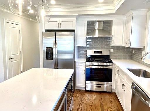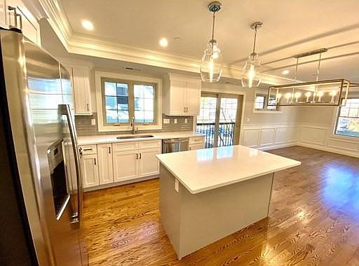 FIRST MONTHS RENT FREE New construction Luxury Rental * 2 Bedrooms 2 baths in Spacious Open floor plan * Sleek Chef's Kitchen Ideal for entertaining * Quartz counters * Hand stained wood floors * Handsome living/ dining room with Fireplace & Sun splashed glass Slider **A Personal Retreat in the Luxurious Master * walk in closet and Spa like Bath * incredible natural light throughout, loads of Closets, Immaculate basement Storage ** Convenient 2 Garage Parking Spots * Outdoor Space * Leave you car and walk to bus & train * Easy to see this Gorgeous unit and a pleasure to show. FIRST MONTHS RENT FREE WITH A YEAR LEASE