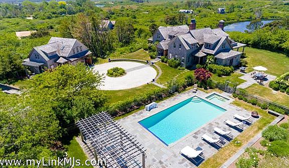 Enjoy the quiet and serenity of this true estate located in the the Maxey Pond community. Overlooking the pond is a 2.8 acre compound comprised of a large main house, a two bay garage with 2-story apartment, private tennis court, heated pool, spa, and manicured grounds. The property is unified by a circular shell driveway and stone pathways. The main house has four bedrooms on the ground floor and a large second floor master. All bedrooms have en suite full baths. Additionally, the first floor has a large family room with stacked stone fireplace as a central anchor. The upper floor has a formal dining room, gourmet kitchen, family room, and formal living room. Two more fireplaces are found on this level. The design is open concept with individual areas wrapping around the central fireplace. There is both separation and flow. The basement is very large and fully finished with entertainment area, gaming space, and gym. The second structure on the property is a two-bay garage and apartment with two bedrooms, living, and a full kitchen. The view out over the pond toward the sound is truly beautiful.