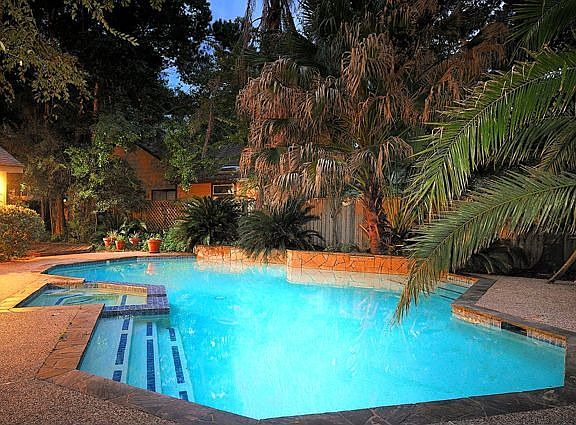 Tree-Lined views in this two-story home on a corner lot & cul-de-sac street centrally located in Panther Creek! Walking up to the house, you will notice the privacy offered by the vegetation & tall trees. Then a whole new view opens, & the beauty of this home can truly be appreciated. Upon entering the foyer, you will notice the stunning wood staircase, high ceilings & windows that provide an abundance of stunning views & natural light throughout. Large family room features a cozy fireplace with a floor to ceiling brick wall, a wet bar, & access to the pool, patio & garden area. Study space is flexible to suit your needs reading, sun, breakfast room? Island kitchen offers plenty of cupboard & counter space. Master is spacious, & master bath has access to the private deck and pool area. Second story features the gameroom with stunning views, guest bedrooms, & full bath. Lush gardens, sparkling pool & spa, & private deck perfect to enjoy all year! Well maintained with many updates.