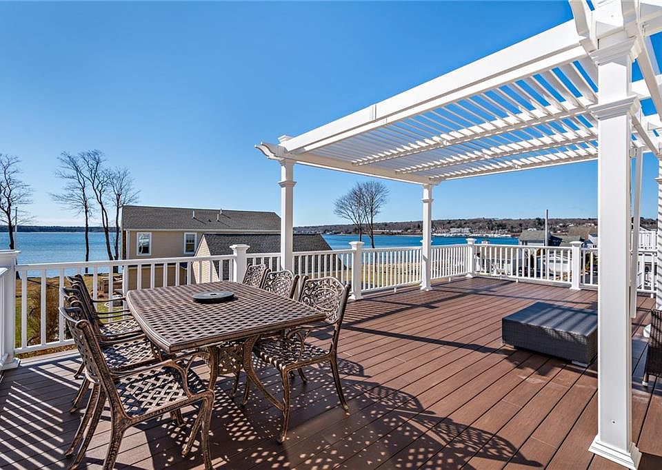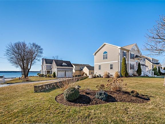 Exceptional water views over Greenwich Bay and located in the Cedar Tree Point coastal community, this home is just steps to a sandy beach coastline! The modern design of this home features generously scaled rooms with vaulted ceilings, hardwood flooring, a gas fireplace and all the amenities for comfortable living. The well appointed kitchen is open to the living and dining rooms, which flow effortlessly to the backyard utopia. Each bedroom, including the master bedroom suite enjoys water views, a sense of privacy and space large enough for sitting areas. Inviting entertaining and outdoor living spaces are enjoyed on both the upper level deck with pergola and the private stone patio below with significant headroom. Unique to this style home is a full basement with potential for additional living rooms (gym, recreation room, workshop or studio), as well as plenty of storage. A whole house Generac generator affords added peace of mind. No flood insurance required. Mooring is an option. Near proximity to recreation, marinas, restaurants, the Interstate, TF Green Airport, Commuter Rail, Restaurants and all necessities.