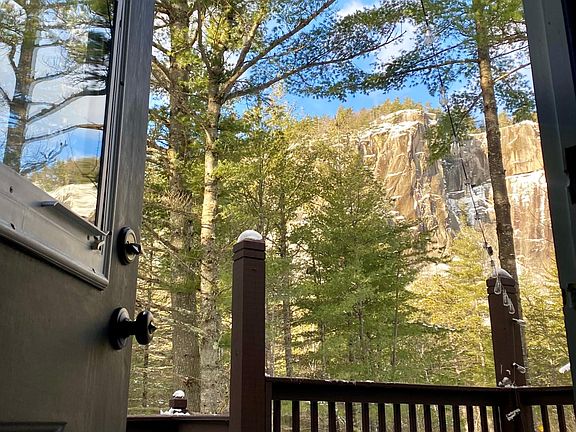 Prime location mountain style house, abutting state forest, with dramatic views of Cathedral Ledge.