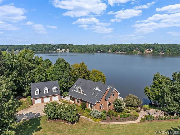 This is your Lake Gaston DREAM HOME! This custom-built home on a manicured lot offers over 300' of shoreline in Merrymount subdivision with stunning sunrise views, and just minutes from I-85. The open floor plan and cathedral ceiling provide ample space, with additional living space above the 3-car detached garage, complete with an EV charging station. The property includes 3 suites, 3 large undesignated rooms, and 6 baths. Enjoy exceptional views from the main floor's lake-side deck. The walk-out basement leads to a covered patio, stone fire pit, and a large double boathouse with a sundeck. A perfect blend of luxury and lakeside living! Contact us today to schedule a private viewing and make this dream home yours.