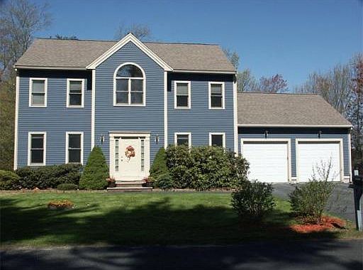 Move right into this bright and open colonial at the end of a cul de sac. Handsome exterior lines with bumped out center entrace and family room. Elegant tiled entry foyer with double closets and window lites around entrance door. Fireplaced cathedral ceiling family room is open to the kitchen. Natural wood cabinets and center island kitchen with separate eat-in area plus a formal dining room.Gleaming Oak floors throughout. Master bedroom with full bath and walk-in closet. Direct entry 2 car automatic garage. Finished walk-out basement with kitchenette, sitting room and full bath. Kitchen sliders to elevated rear deck overlooking generous lawn surrounded by woods. The convenience of 3.5 baths, central air conditioning and all gas heat, hot water and cooking. A short distance to the commuter rail and the local elementary school. Just turn the key to this one!!