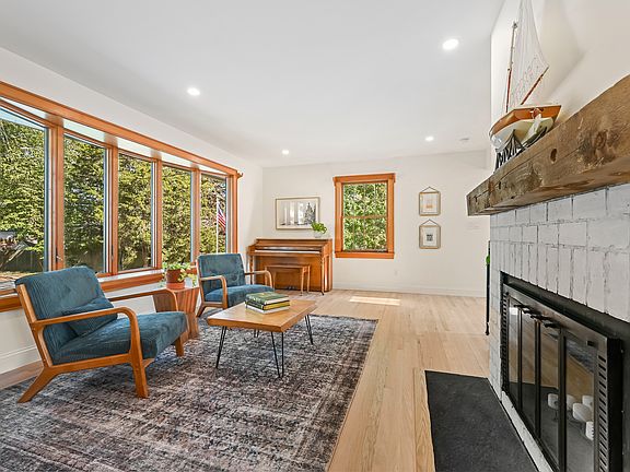 Wood burning fireplaceQuartz countertopsNewly finished hardwood floorsInviting newly renovated homeLevel fenced in backyardCustom closet built-insMultiple skylights