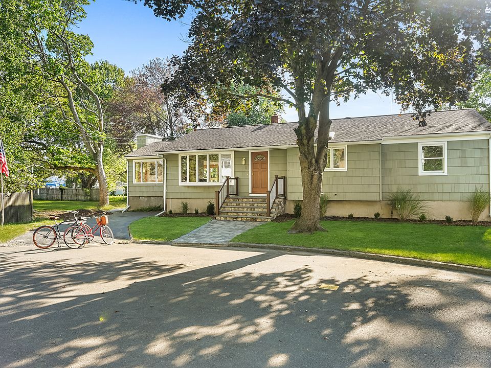 Exquisitely updated ranch-style home situated on a quiet cul-de-sac in the coveted beach area as well as just steps to Fairfield's vibrant downtown and the train station. This inviting, newly renovated home features a wonderful open floor plan and is filled with natural light, enhanced by multiple skylights throughout. Step into the welcoming living room featuring a wood burning fireplace, large bay window, and recessed lighting. This space seamlessly flows into the family room, which boasts vaulted ceilings with wood beams, skylights, a second fireplace, and sliders leading to the fully fenced backyard. The family room opens to a stunning chef's kitchen with stainless steel appliances, quartz countertops, and more skylights. Adjacent to the kitchen is the dining room with a vaulted ceiling and access to the back patio - ideal for indoor-outdoor entertaining. This home offers three bedrooms and two beautifully renovated full baths, including a primary suite with custom closet built-ins. Newly finished hardwood floors and fresh paint extend throughout, creating a bright and cohesive feel. The level, fenced in backyard provides plenty of space for relaxation and gatherings, featuring a large patio perfect for dining or entertaining. Centrally and perfectly located to easily enjoy beaches, shopping, restaurants, train, library, schools and more. Move in and begin enjoying one-level living and this incredible lifestyle!