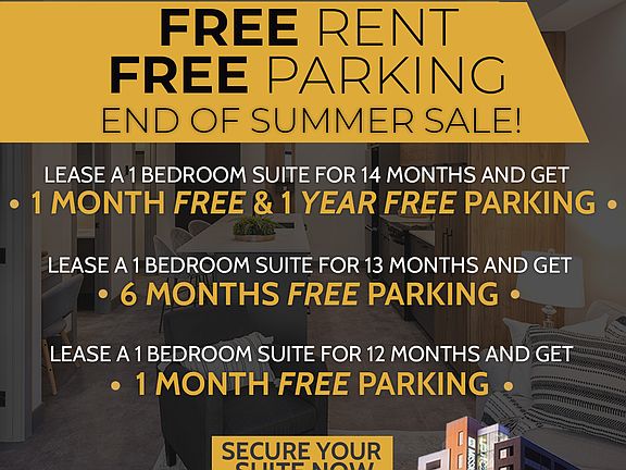 Limited Time Offer on Select Suites - 1 Month Free for 1 Bedrooms, 2 Months Free on 2 Bedrooms!