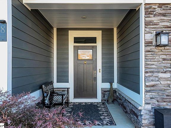 Welcome to 8 Mohegan Way, nestled in the highly sought-after Riverstone community, where everyday living feels like a retreat. Known for its exceptional amenities and scenic natural beauty, Riverstone offers a lifestyle like no other. Residents enjoy a breathtaking two mile river trail that winds peacefully along the Reedy River perfect for morning jogs, sunset strolls, or simply unwinding in nature. The community also features a resort-style clubhouse, sparkling pool, fitness facility, tennis and pickleball courts, playground, and more. This beautifully enhanced 3-bedroom, 2-bath ranch home stands out with thoughtful upgrades the sellers added after closing—creating a more refined, custom feel than typical builder selections. From the moment you arrive, the meticulously landscaped yard and stone-accented set the tone for what awaits inside. Step through the foyer into a bright, open-concept living space designed for both comfort and style. The chef-inspired kitchen is truly the heart of the home, showcasing a stunning backsplash, XL island, dual-zone gas oven, stainless steel appliances, and designer island lighting that adds a touch of elegance. The living area features cozy gas logs, creating the perfect space for gathering or relaxing. The primary suite is a serene retreat, highlighted by a gorgeous custom accent wall and a spa-like ensuite bathroom that has been completely updated with new flooring, a large tiled shower with built-in bench, and seamless flooring that extends into the expansive walk-in closet. This trendy, upgraded flooring brings a cohesive and upscale feel to the entire space. Two spacious guest bedrooms and a beautifully appointed full bath offer comfort and versatility for visitors, family, or a home office. Step outside to your private oasis—an inviting covered patio with retractable 85% UV blocking pull-down privacy screens for shade or seclusion. The porch and patio feature elegant click-tile flooring, giving the outdoor space a polished, finished look rarely found in homes at this price point. The fully fenced, level backyard backs up to mature trees, providing peaceful views. Additional features include a two-car garage and the peace of mind of living in a vibrant, amenity-packed community. 8 Mohegan Way is the perfect blend of comfort, style, and resort-like living—schedule your showing today and experience the beauty and upgrades this home offers.