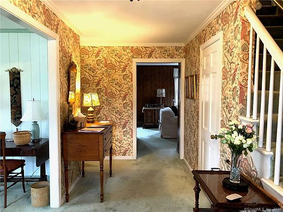 Situated within the private association of Mason's Island, this charming and spacious 5 bedroom Colonial is a must-see. The main floor features a generous foyer, living room with fireplace and built-ins, large eat-in kitchen with wood stove, and cozy den for relaxing. Rounding out the main floor is a screened-in porch for warmer months, half-bath, and access to the 2-car garage. The upper floor boasts a large master bedroom, with full en suite bath and walk-in closet. The four other bedrooms are also spacious, with original and well-maintained hardwood floors. There is also a second full bath, dedicated laundry room, and an extra room that could easily function as an office/study, craft/project room, or even nursery. Pull-down access to the attic provides ample storage. This sturdy, well-cared-for home has a floor plan for comfortable living. No flood insurance required; property is not in a flood zone. Located just minutes from downtown Mystic's restaurants, shops, art museum, Aquarium, Seaport, Amtrak, marinas, and more. Buyers should take note that property owners who are part of the Mason's Island Property Owners Association may be proposed for membership into the Mason's Island Yacht Club; however, membership is not guaranteed. (The Yacht Club and the Mason's Island Company operate independently of one another. The Yacht Club offers amenities and instruction for sailing and small boat racing, tennis, bocce, swimming, as well as social programs and regattas.