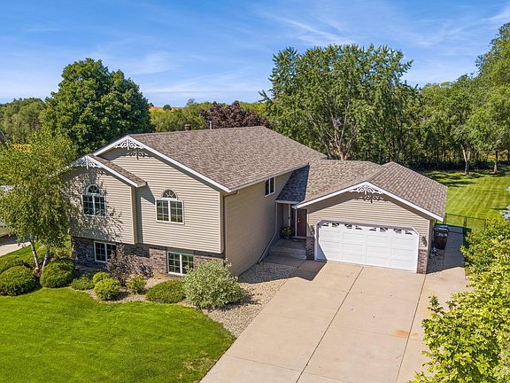 Meticulously maintained 5br/3ba home with numerous updates. Freshly remodeled kitchen with large island and stainless-steel appliances. Bathrooms have Solatube sky lighting. Sunroom add-on gives you even more space with open floorplan. Brand new roof, newer mechanicals and steel siding that is warranted for 50 years. Andersen windows throughout the home. Extra deep garage with workshop space and a separate entry to lower level. If you desire even more garage area, space to add-on at side of garage. All the work has been done for you and good for years to come. All this plus an extra-large heated in-ground pool. Great for parties and grill outs! Two-thirds of an acre lot with extra yard space for your play area. Great location within town: convenient to river, biking trails, hospital, YMCA, high school, downtown. Also, convenient to exit town for access to airport, Minneapolis, St. Paul.