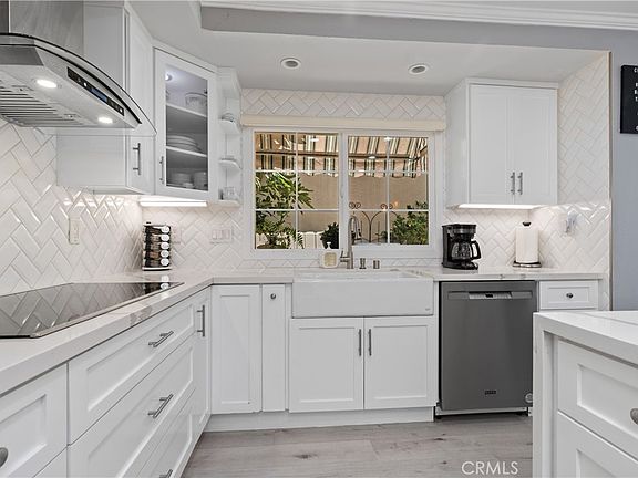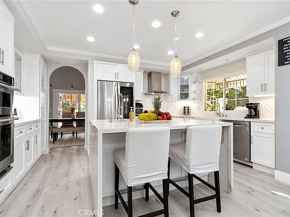 This breathtaking, completely renovated home expertly combines contemporary elegance with practical layout. Covering 2,120 square feet on a spacious 4,900-square-foot lot, this beautiful property provides plenty of room for both interior and exterior enjoyment. The house includes 3 bedrooms and 3 full bathrooms, along with a sophisticated powder room, guaranteeing convenience and seclusion for everyone. Every bedroom includes an en-suite bathroom and a ceiling fan, forming a personal sanctuary. The generous master suite is a sanctuary, equipped with a dual-sink en-suite bathroom, a stylish standing shower, and a standalone soaking tub. A HIGHLIGHT FEATURE IS THE FLEXIBLE DOWNSTAIRS SUITE, FITTED WITH AN IMPROVED MINI KITCHEN, REFRIGERATOR, COOKTOP, AND SEPARATE ENTRANCE—IDEAL FOR GENERATING RENTAL INCOME OR AS AN IN-LAW SUITE FOR EXTENDED FAMILY LIVING. The living space delights with a soaring ceiling, skylights that fill the area with sunlight, and a warm fireplace with a fashionable marble mantel. This open-layout plan transitions smoothly into a dining space surrounded by big windows, welcoming plenty of daylight. The gourmet kitchen boasts a large quartz island with a sink, coordinating countertops, contemporary pendant lights, clean white cabinetry, and high-end stainless-steel appliances. Pale wood flooring and careful decor enhance the area, while a door offers easy access to the side yard. New improvements feature a cutting-edge, energy-saving air conditioning unit and a tankless water heater, providing current ease and eco-friendliness. The exterior areas are just as enchanting. The front facade showcases a perfectly kept driveway bordered by palm trees and trimmed shrubs, producing impressive curb appeal. The backyard patio is a peaceful escape, featuring a brick-paved path, easy-care artificial turf, and a covered seating spot—perfect for hosting or unwinding among established trees and rich greenery. Inside, the residence keeps impressing with smart enhancements. The two-car garage includes epoxy flooring, a laundry zone with a utility sink, a work desk, and plenty of efficiently organized storage. Situated in the center of Irvine, 8 Monticello delivers an ideal mix of peaceful neighborhood life and closeness to lively local facilities, such as excellent schools, shopping, dining, and leisure options. This outstanding home is a unique find, merging modern improvements, adaptable living areas, and a calm, desirable setting.