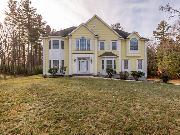 ENJOY FALL'S FULL SPLENDOR IN THE PRIVATE WOODED SETTING. Beautifully sited on a level cul de sac lot, this mint condition home has been meticulously cared for by the original owners. The marble open foyer welcomes you with a gorgeous bridal staircase & abundant natural sunlight. Off the foyer is the formal LR that opens to the formal DR with hardwood floors, wainscoting & crown molding throughout. The spacious center island eat-in kitchen offers SS appliances, granite counters & access to an expansive deck that overlooks the private yard. Note the family room with a fireplace and French door access to the tiled sun room with cathedral ceiling. Great place to work at home in the private library. Upper level offers a master suite with coffered ceilings & a luxurious master bath with tub and tiled shower. 9' ceilings on both levels.This property abuts Harold Parker State Park with hiking and biking trails, ponds & fishing. Amazing property in excellent condition, great for commuters