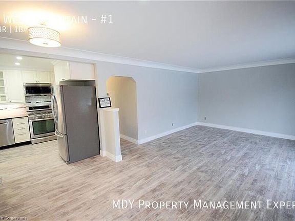 New vinyl floorsWhite moldingNew light fixturesUpdated bathroomModern gray colorGranite countersStainless steel gas stove