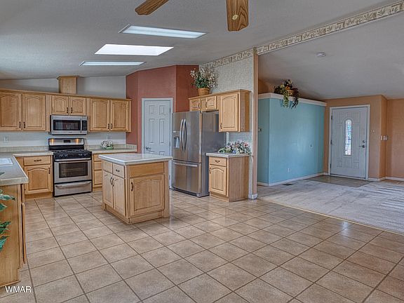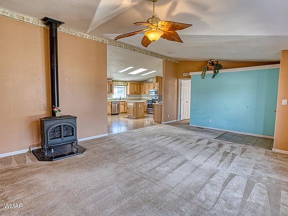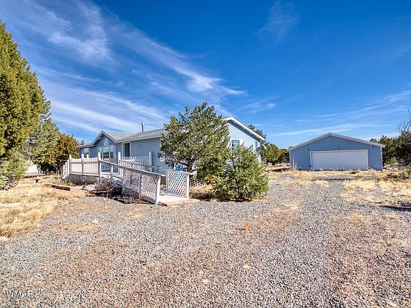 If you are ready to welcome peace & quiet into your world w/city amenities just 20 minutes away this property in Vernon, Arizona is for you! On 1.26 acres sits this single story, 2006 Cavco manufactured home featuring 3 bedrooms & 2 bathrooms in a split floorplan! The front living room is large & has a gorgeous gas-powered woodstove fireplace! The home also features forced air heat & central AC! The eat in kitchen is huge offering a kitchen island, all newer stainless-steel appliances (refrigerator, dishwasher, gas range, microwave)! Right off the kitchen is the laundry area with countertop & newer Samsung washer & dryer w/pedestals! The property is fully fenced & features an oversized detached garage: 3 cars easily split into a 2-car garage in the front & a workspace behind!