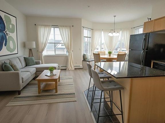 Corner unitOpen-concept living spacePlenty of natural lightNeutral colorsWell-designed kitchenGranite countertopsMaple cabinetry