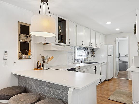 Welcome to 8 Railroad Avenue, a haven of comfort and convenience nestled in the heart of Jamesport. This 2-bedroom, 2-bathroom residence boasts a new roof, siding, and gutters, promising a worry-free living experience. The secluded backyard is a personal oasis, complete with a pool featuring a new lining and energy-efficient pump. A gazebo and Trex deck offer the perfect spots for relaxation, while the 1500 square foot putting green, pickleball court, and basketball court invite fun and games.
