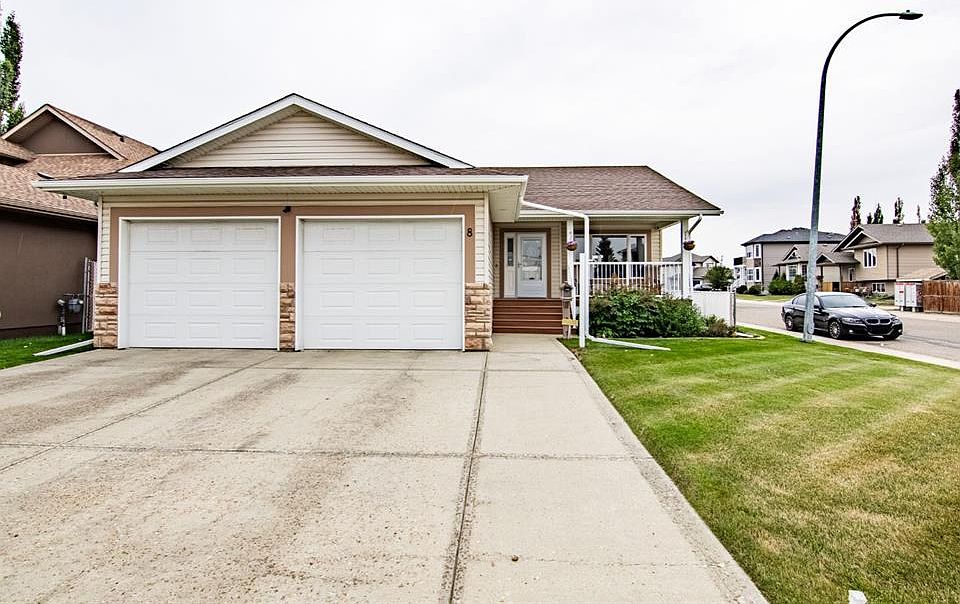 Welcome to 8 Oswald Close, a beautiful & exceptionally well-kept bungalow located on a quiet close in the highly desirable Oriole Park West area of Red Deer. Built in 2006, this home offers the perfect blend of comfort, practicality, & timeless appeal. With 1,227 square feet on the main floor, 4 bedrooms & 3 full bathrooms, this property provides ample space for families of all sizes - whether you are a growing family, a downsizer who still needs room for guests or someone who loves to entertain. As you arrive, you will be greeted by a charming covered front porch, the perfect place to enjoy your morning coffee or evening sunset. Step inside to discover a bright, open floor plan, creating an inviting sense of space throughout. The living area is warm & welcoming, designed for relaxation & easy living. The kitchen is spacious & functional, offering plenty of cabinetry, corner pantry, & workspace, ideal for family meals or hosting friends. The adjoining dining area overlooks the backyard, providing easy access to the covered back deck, where you can relax in privacy or host summer barbecues rain or shine. Both the front & back decks are maintenance-free, allowing you to spend more time enjoying your outdoor spaces and less time on upkeep. The primary suite is a comfortable retreat featuring a 4-piece ensuite bathroom, offering a private escape at the end of the day. Two additional main-floor bedrooms & another full bathroom complete the upper level, making the layout ideal for families or guests. Downstairs, you will find a fully developed basement with in-floor heating, keeping the space cozy during Alberta’s cooler months. The lower level features a spacious family room with a wet bar, perfect for entertaining or enjoying movie nights. You will also find two additional large bedrooms, a full bathroom & excellent storage areas, ensuring there is plenty of room for all your household needs. The 24x24 front attached garage offers both space & convenience, with room for vehicles and extra storage. Outside, the property shines with a fully fenced and beautifully maintained backyard - private, tidy, & ready for you to enjoy. The underground sprinkler system keeps your lawn lush and green with minimal effort, while a garden shed provides additional outdoor storage. Additional highlights include central air conditioning, phantom screens on both the front & back doors for comfort and airflow and new shingles installed in about 2018, giving peace of mind for years to come. Every detail of this home reflects care and pride of ownership - it is squeaky clean, incredibly tidy, and truly move-in ready. Located on a quiet close in Oriole Park West, this home is just steps away from beautiful walking trails, parks, schools, & convenient amenities. Homes like this - combining quality, functionality, and meticulous upkeep - are hard to find. If you have been looking for a home that feels warm, welcoming, and perfectly maintained, 8 Oswald Close is the one.