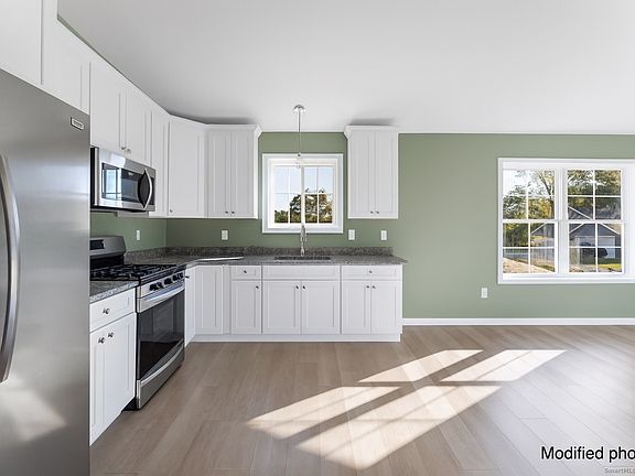 To Be Built! Looking for your Starter Home or looking to downsize? Welcome to Nahaco Hills, a private community of 24 single family ranch homes with no age restrictions. This ranch style, single family home has an open-concept living/kitchen with natural light and luxury vinyl plank floors throughout. The modern kitchen boasts white shaker soft close cabinets, granite countertops, stainless steel appliances, and a pantry. The primary suite offers a walk-in shower, granite vanity, and a massive walk-in closet ready for a custom system. The half bath includes laundry hookups for added convenience. A flex room at the front of the home provides the ideal space for a home office, guest room, or studio. The attached two-car garage offers insulated plaster walls and additional storage. Enjoy your maintenance free composite deck & covered front porch. There's on-demand propane heat, a shared well, and private septic system. This is a base model unit. Any upgrades such as central air, vaulted ceilings, kitchen island, and automatic garage door opener will be optional add-ons. astford offers a wonderful blend of country living and convenience. Eastford, Connecticut is a peaceful, rural town known for its natural beauty & quiet atmosphere. Residents enjoy easy access to scenic hiking trails, state forests, and outdoor recreation, including the popular Natchaug State Forest and the Still River area. Audio/Video surveillance in use. Pictures are of other units and are not an exact representation of what's being built.
