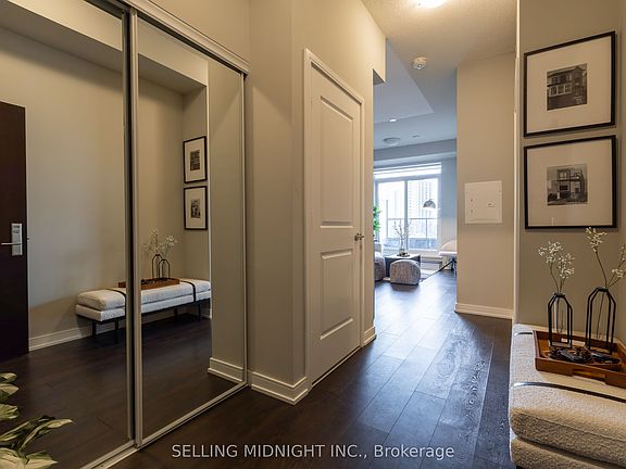 2 PARKING SPOTS & 11-FT CEILINGS! This 1-bedroom suite with a private terrace is perfect for a single occupant or couples in a pet friendly building! Located on the only floor in the building with 11-ft ceilings, this sun-filled home includes a spacious terrace overlooking northwest Mississauga. Enjoy direct access to the building's outdoor pool and lounge right on the same level for added convenience. Thoughtfully upgraded with $7,500 in designer finishes, including modern cabinetry, a statement backsplash, feature wall, double mirrored closets in the foyer and bedroom, custom blinds, and more. The open-concept layout is bright and functional, featuring stainless steel appliances and a stylish kitchen. This suite includes two side-by-side parking spots - one purchased separately from the builder for $35K, and a locker on the same floor. Conveniently located near Hwy 403, 401, and the QEW, and minutes from Square One, Sheridan College, restaurants, transit and the soon to be completed LRT -this home offers modern comfort and unbeatable accessibility.