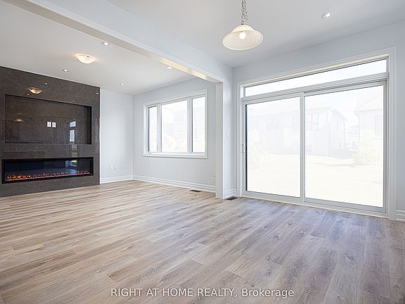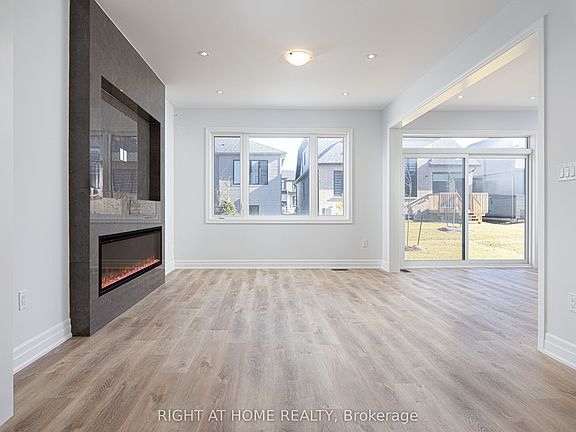 Located in the desirable River's Edge subdivision, this modern contemporary 2-storey brick and stone home offers 2,715 sq. ft. of beautifully designed living space with 4 bedrooms and 3.5 baths. You are greeted with a stunning stone front entrance that leads to the spacious foyer and oak staircase with stairwell window, boasting natural light. Throughout the home, enjoy luxury vinyl plank flooring, smooth ceilings, pot lights, quartz countertops, and matte black door hardware. The gourmet kitchen offers upgraded cabinetry, quartz countertops and backsplash, a sleek accent island, with the adjacent dining room, perfect for entertaining! A cozy living room that would make a perfect playroom, and a spacious great room highlighted by a spectacular 24"x48" custom tile surround with linear fireplace. A large laundry/mudroom with upper-cabinets and mosaic tiled floors adds everyday convenience. Upstairs, you'll find four spacious bedrooms, a charming window-filled reading nook, a generous main bathroom, and two ensuites-including a luxurious primary ensuite with a freestanding tub and glass shower. An opportune main floor side entrance included with access to the unfinished basement, complete with enlarged windows, cold cellar, and plenty of potential. Outside, a spacious yard with a 2 car garage that includes an EV-charger rough-in and electric door openers. Air conditioning, exterior pot lights and electrical rough-ins for security system are included. Quick closing is available - just in time for Christmas!