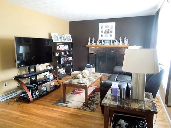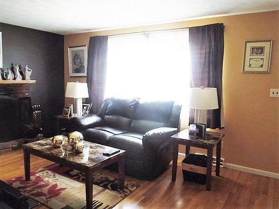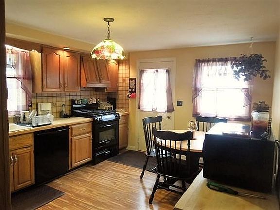 The Quintessential American Cape set in a lovely neighborhood with excellent access to major highways and amenities. The eat-in oak kitchen offers custom cabinetry with appliance garage and pantry cabinet with roll out drawers. The living room has a wood burning fireplace and hardwood floors. Two other rooms offer closets so they could be used as bedrooms. One is currently being used as an office/den but the floor plan is flexible. There is a full bath on the first floor. Upstairs are three ample bedrooms and another full bath. The Master has 3 closets and a ceiling fan. The basement is partially finished with an awesome rec. room complete with 65" television (stays with property), custom cabinetry/book shelves. The other side of the basement has the laundry room, utilities and work bench. Lovely fenced yard and Central Air.