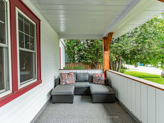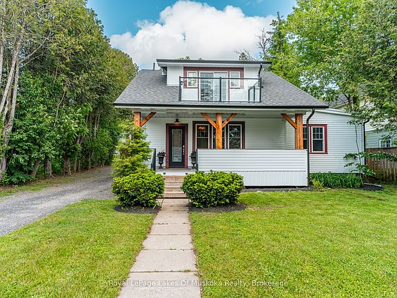 Just steps from Lake of Bays, this charming 1915 century home in the heart of Baysville offers the perfect mix of history, comfort, and location. With quick access across the street to the public dock for swimming & paddling, there is also a boat launch at the end of the street. You can enjoy the lake lifestyle with ease while still being close to all village amenities. Inside, the home offers 3 bedrooms, 2 full bathrooms, and large principal rooms filled with character. The main floor features a welcoming living room, dining area, and a modernized kitchen with stainless steel appliances and a centre island. The primary bedroom on this level includes a walkout to the yard and is paired with a nearby 3-piece bath. Upstairs, two generous bedrooms with walk-in closets share a 4-piece bath and have access to a private balcony with treetop views and views of the water.The lower level is full height and provides excellent workshop space, built-in storage, a utility sink, and houses the forced air heating system. Outside, the private backyard includes mature trees, level lawn, and a hard-wired DogWatch invisible fence, perfect for pets. A detached double garage with loft adds versatility for storage, hobbies, or future studio use.With the marina, brewery, and parks all within walking distance, this property offers in-town convenience and year-round enjoyment of Lake of Bays. Whether as a full-time home, four-season retreat, or potential rental, this is a special opportunity in one of the most desirable villages in Muskoka.