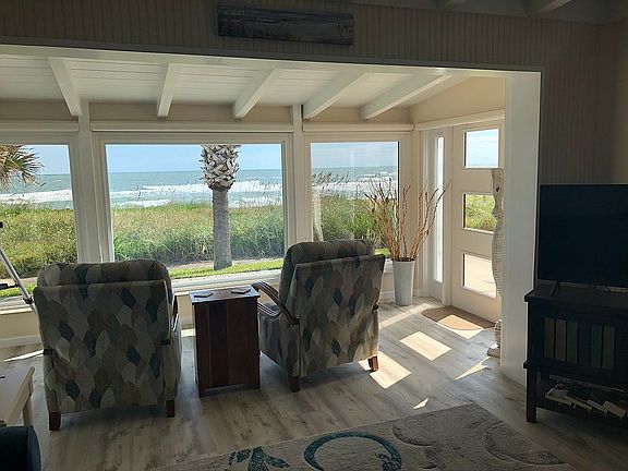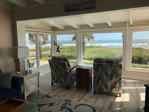 AMAZING, DIRECT OCEANFRONT HOME. ALSO A GREAT VACATION RENTAL PROPERTY. ENJOY UNCOMPARABLE OCEAN VIEWS FROM YOUR LIVING ROOM, THRU FLOOR TO CEILING WINDOWS. DESIRABLE OPEN FLOOR PLAN, TOTALLY RENOVATED. THE UPDATED KITCHEN FEATURES QUARTZ COUNTERTOPS AND GLASS BACKSPLASH, LG STAINLESS STEEL APPLIANCES AND EAT IN AREA. HIGH CEILINGS WITH EXPOSED BEAMS, NEW SEPTIC TANK 2016, IMPACT DOORS AND WINDOWS WITH SHUTTERS, PAVER PATIO AND SIDEWALK, AND EXTENDED PAVER DRIVEWAY. 2 BEDROOMS AND 2 BATHS, AND OVER 1400 SQ FT OF LIVING SPACE. ENJOY YOUR MORNING COFFEE OVERLOOKING THE OCEAN FROM YOUR PATIO OR IMMEDIATE WALK OUT TO THE BEACH THRU THE PRIVATE BEACH ACCESS, NO DRIVE BEACH. THERE IS A FINISHED GARAGE WITH AIR CONDITIONING.