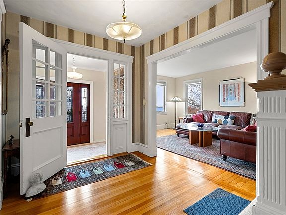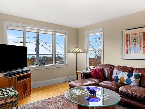Perched on a hill overlooking Swampscott Harbor, the Atlantic Ocean, and the Boston skyline, 8 Ocean View Road offers classic New England charm with beautiful water views. This 1930s Colonial features 3 bedrooms and 2.5 baths, including a serene primary suite. The first floor boasts a living room and family room with fireplace both with ocean vistas—plus a formal dining room and kitchen with large island, both with access to a three-tiered deck, ideal for grilling and entertaining. Hardwood floors and period details evoke timeless elegance throughout. Additional features include a one-car garage with tandem parking for three more vehicles, solar panels for energy efficiency, and oil heat. Combining character, comfort, and captivating scenery, this coastal gem embodies the best of Swampscott seaside living. Showings start Saturday 11/15/25 at the open house 12-1:30.