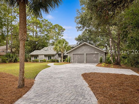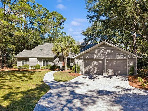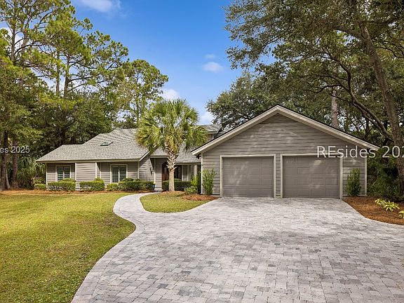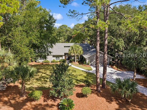 Tucked away on the Mariner's side of Palmetto Dunes, this elegant coastal retreat blends timeless design with a prime location just a short distance from the beach. Thoughtfully updated and meticulously maintained, the home is offered fully furnished for a true turnkey experience. Light-filled interiors showcase a vaulted-ceiling living room with a beverage center, a versatile office or flex space, and a beautifully appointed kitchen featuring GE Profile appliances, quartz countertops, and generous counter seating. Just off the kitchen, a cozy family room centers around a Lowcountry tabby wood-burning fireplace, creating a warm and inviting gathering space. A screened porch overlooks the sparkling saltwater pool, framed by a travertine deck and patio area-perfect for effortless indoor-outdoor living. The primary suite features serene lake views, custom his-and-hers closets, built-ins, and a spacious en-suite with walk-in shower. Two guest bedrooms share a Jack-and-Jill bath, while a private fourth ensuite upstairs completes the layout. Owners enjoy access to Palmetto Dunes' premier golf, tennis, pickleball, lagoon system, leisure trails, dining, and beaches - a quintessential Lowcountry escape.