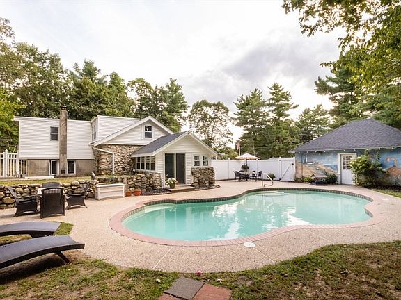 Welcome to 8 Old Fisher Lane! This inviting 8 room, 4-bedroom, 3-bath home features over 2,000 sq. ft. of living space with classic stone siding and timeless character. The first floor offers a spacious primary suite with ensuite bath, a modern kitchen with newer stainless steel appliances, a bright dining room with wood stove, cozy living room with wood-burning stove, and a family room with cathedral ceiling and loft. Enjoy a convenient laundry, second full bath, and a sun-filled heated four-season room overlooking a private backyard oasis with an inground pool—perfect for entertaining or relaxing. Upstairs, you’ll find three generously sized bedrooms and a third full bath. Additional highlights include a peaceful lot, fenced yard, oversized two-car garage currently used as workshop and storage, and numerous updates throughout. Ideally located near town center, Fisher School District, major routes, Adam’s Farm, and scenic trails.