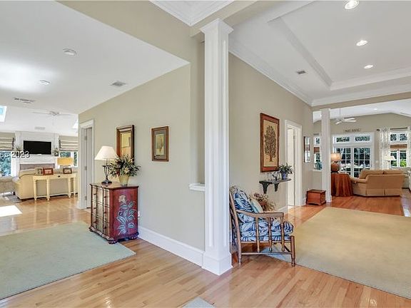 Stunning professionally remodeled home on a gorgeous 1 2 acre lot on private Outpost Lane in Port Royal on the 16th fairway of Robbers Row Golf Course. Upon entering the home, the gracious foyer leads you to the main living area with views out to Robbers Row's 16th fairway. The lvng rm has a gas fireplace, hardwood floors throughout, and wired w theatre surround sound. Living area opens to a chef's kitchen w all new SS appliances, an island with a drawer microwave, double ovens, warming drawer, and gas 6 burner cooktop. Home features a large office-den with views of the back garden and pergola, 3 large bedrooms, all with en-suite baths.