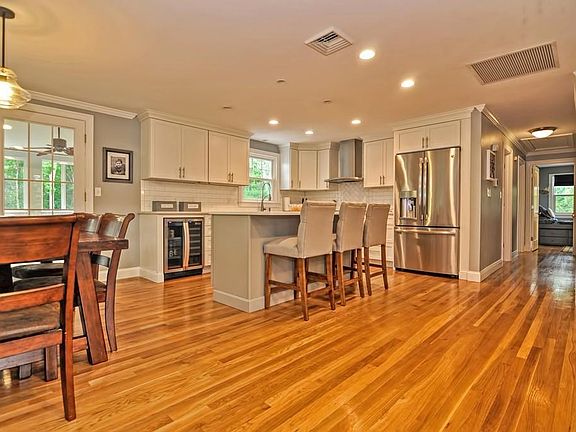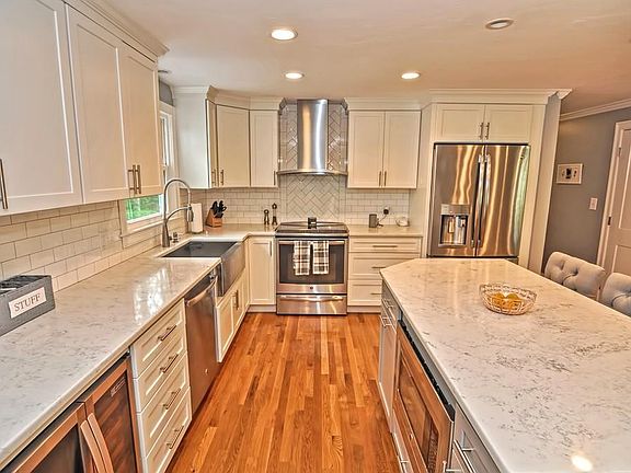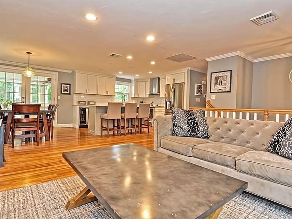 STUNNING, renovated 3-4 Bedroom Raised Ranch in a cul de sac. Need I say more? The remodeling of the first floor includes the Kitchen, dining area, living room, 3 bedrooms, full bath, windows. This home has everything you've been looking for. Wide open floor plan with amazing space for entertaining and family get togethers with an easy flow to the outside decks. Kitchen is loaded with GE Profile SS appliances,( refrigerator includes a Keurig coffee maker feature), induction range with hood, wine/beer fridge, big center island, Quartz countertops, custom cabinets. There is hardwood flooring throughout the first floor leading to the sunroom which boasts cork flooring, walls of windows/sliders and a painted tin ceiling. The lower level has a comfortable family room as well as a study/guest bedroom and half bath. This home has been thoughtfully redesigned with every amenity. One mile to the commuter rail, 10 min. to Patriot Place.
