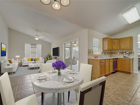 One or more photo(s) has been virtually staged. This 3 bedroom 2 bathroom house has a screened in pool, has a fully fenced backyard, 2 car garage and located on a large corner lot! The house has been recently updated with new paint, new stainless steel appliances, new washer and dryer! As you walk in the house you enter the formal living room, to the right you walk thru the formal dinning room as you walk to your two bedrooms. As you walk to the other side of the house you walk thru the kitchen, to the eat-in area of the kitchen area then the family room that has a sliding glass door to the patio oand pool. Off the family room is the Owner's Suite and Bathroom. This house is located within walking distance to Debary Elementary School, shopping, restaurants and minutes to I-4. Call today to see this amazing house!