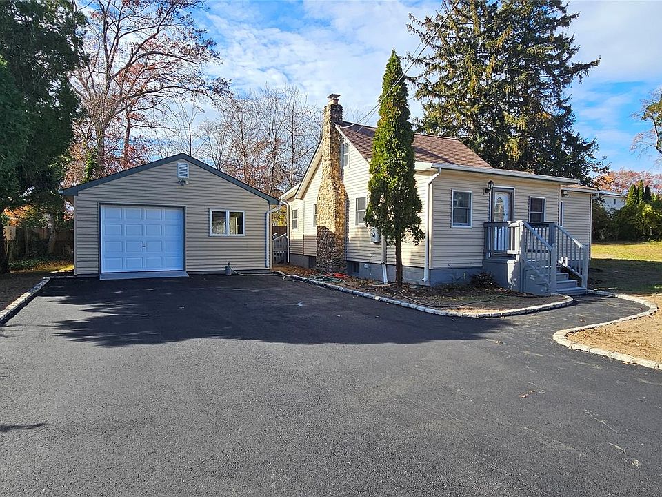 Beautifully Updated 3-Bedroom Cape In Rocky Point. Welcome Home To This Warmly Updated 3-Bedroom 2-Full Bath Cape Set On A Generous 160x100 Level Lot In The Heart Of Rocky Point. This Charming Property Features Hardwood Throughout, A Granite Kitchen With White Cabinetry, Stainless-Steel Appliances & A Cozy Living Room Accented By A Stunning Stone Fireplace. Both Bathrooms Have Been Tastefully & Fully Renovated, Offering A Modern, Spa-Like Feel. The Third Bedroom Is A Spacious Loft-Style Room Located On The Second Floor, Complete With Heat Ana Perfect For Use As A Bedroom, Or A Private Retreat. Enjoy Outdoor Living On The Spacious Deck, Ideal For Entertaining. The Home Also Includes An Oversized, Newly Paved Driveway Bordered With Elegant Belgium Stone Providing Excellent Curb Appeal & Ample Parking. A Standout Feature Is The Oversized Two-Car Detached Garage, Offering Exceptional Versatility-Ideal For An Art Studio, Home Office, Workshop, Or A Generously Sized Hobby Space Or Even Possible Space For A Family Member.The Expansive Lot Provides Abundant Potential , Whether You Envision A Future Inground Pool, Outdoor Structures, Or Custom Landscape Plans. Located On Rocky Point's Level Roads, This Home Offers Low Taxes & Convenient Proximity To Shopping, Restaurants, Parks, Beaches & Easy Access To Major Local Roadways For A Stress-Free Commute. This Is A Move-In-Ready Gem With Space, Style & Opportunity-Don't Miss It~ Professional Photos Coming Soon!