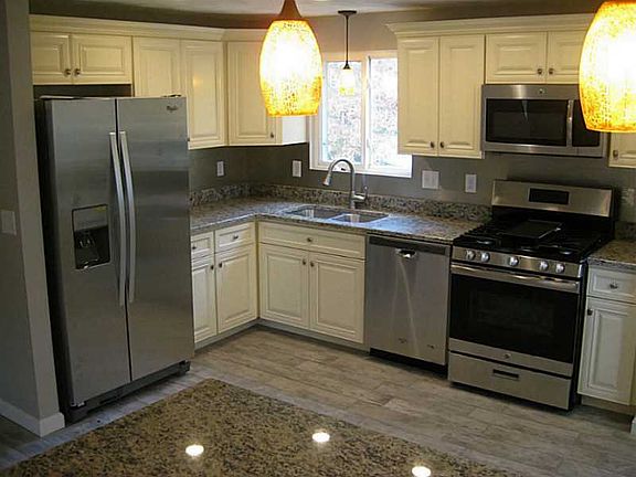 Completely remodeled!! Gorgeous granite/ss kitchen with new appliances. New hardwoods. Every room newly finished from top to bottom! Three floors of living space! Double decks with wooded privacy. Dead end. Great family home.